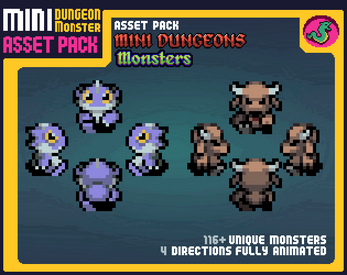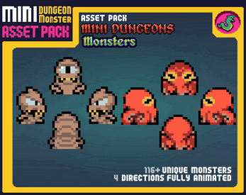 TOTAL of over 100 unique monsters in 16x16 size in pixelart style